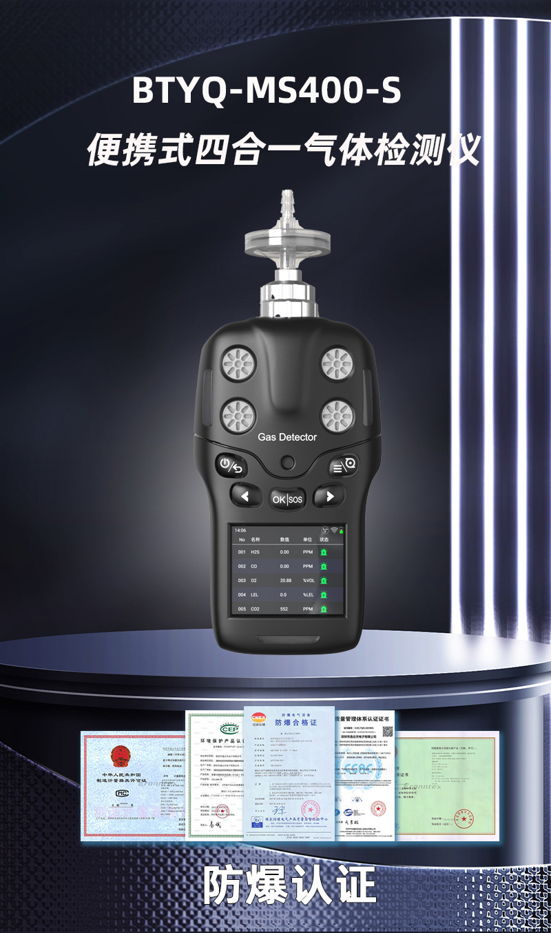 BTYQ-MS400-S便攜式四合一草莓APP下载正版儀主要用於快速準確檢測氣體泄露或氣體濃度超標報警,內含1-4個數字傳感器,每個數字傳感器都是即插即用,智能識別。草莓APP下载正版的主要檢測原理有:電化學、紅外、催化燃燒、熱導、PID光致電離等。BTYQ-MS400-S廣泛應用於消防、應急救援、受限空間、石油、化工、冶金、煉化、燃氣、倉儲、醫藥、環保、空氣治理等場合。